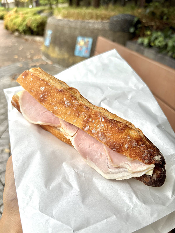 ハムとバターのバゲットサンドは、オーダーしてから作ってくれます。