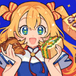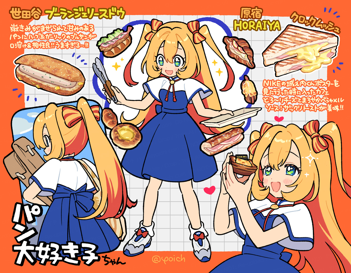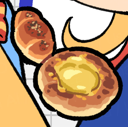 ヘッダー用に描いた絵のキャラ設定を見たいという言葉をいただき、嬉しかったので全身姿を描きました🎶それと私が最近食べて美味しかったパン!!