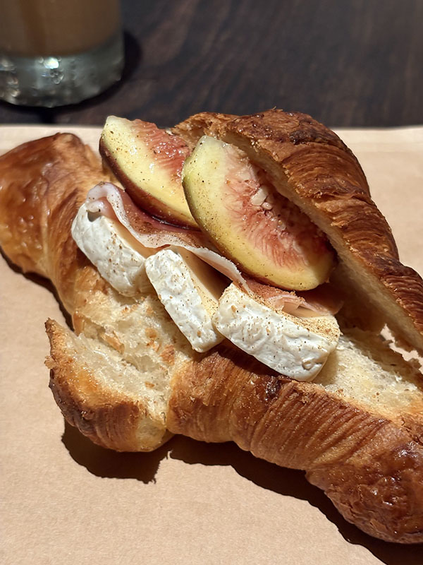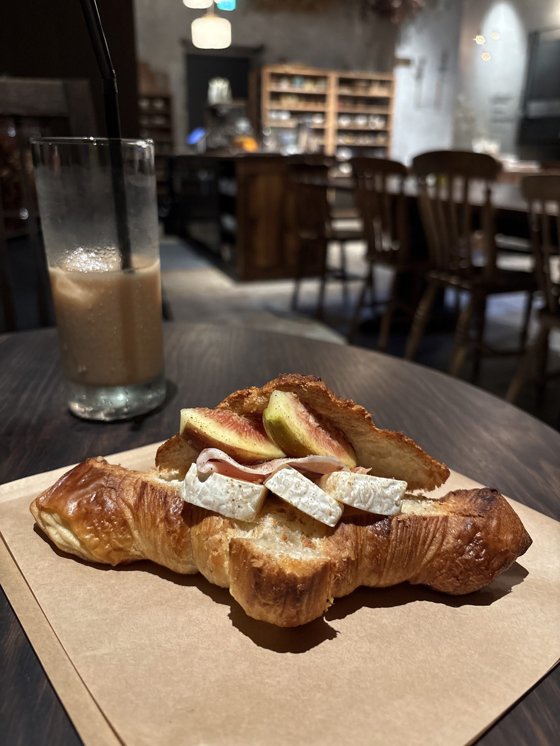 クロワッサンは外サクサクで中はしっとり、バターの甘塩っぱさがうま〜い…!中には砂糖の甘さもあり、イチジク、生ハム、カマンベールチーズ、そしてシナモン!!大正解間違いなしの美味しさ!!!