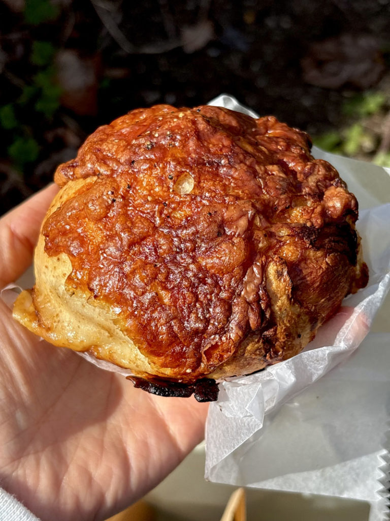 目に入ったインパクトがでかすぎる!餃子チーズベーグル!?という代物!